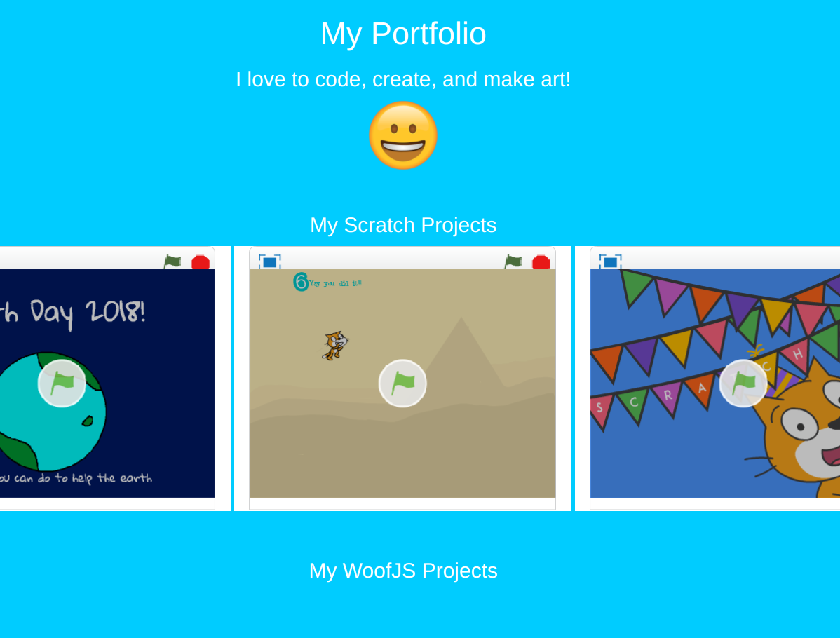 16. Continue to develop your page. Add more Scratch projects, change the fonts, put the sections into colored boxes -- you can do anything. Get creative!